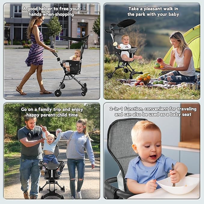 مقعد مبطن بيتحول بسهولة من الجلوس للنوم + وسادة دعم للرقبة والظهر علشان راحة طفلك مضمونة من أول دقيقة.