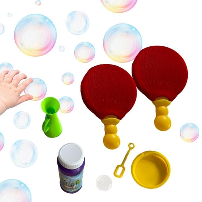 السائل اللي معاها سحري بيعمل فقاعات قوية تقدر تخبطها بالمضرب وتطيرها من غير ما تفرقع في ثانية 🪄.